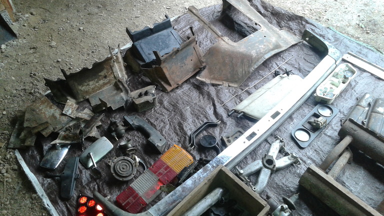 osa juppe on läinud!! alles on veel käigukast, tagumine stange, roostes velg koos rehviga, iluliistud, mootoriplekid ja veel mingit vana pudi-padi.